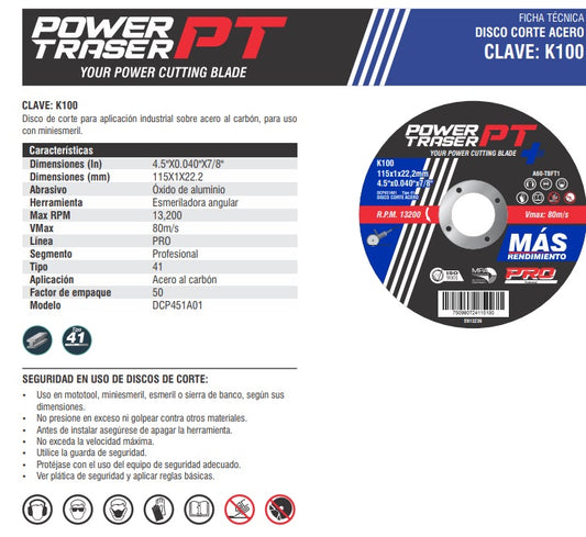 DISCO CORTE METAL 4-1/2" X .040" K100